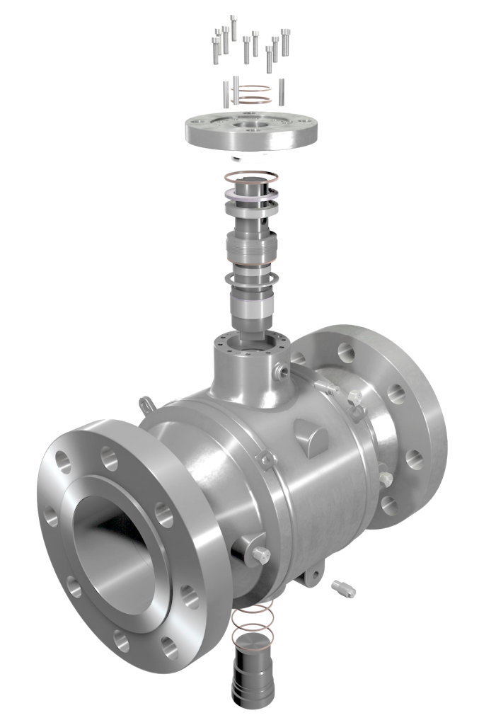 La décompression de la chambre morte est possible grâce à une purge. Les sièges cotés amont et aval garantissent ainsi une fermeture étanche de la chambre morte en position ouverte et fermée. L’étanchéité du robinet à boisseau sphérique peut ainsi être contrôlée via la chambre morte lorsque la tuyauterie est sous pression de service.